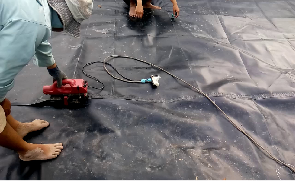 – Ao nuôi sau khi đào phải được đầm chặt, phải dọn dẹp sạch sẽ mặt bằng, vứt bỏ các vật sắc nhọn như đá, cành cây, sắt thép nhọn sau đó tiến hành trải bạt HDPE; nhân công không được hút thuốc khi đang trải bạt.